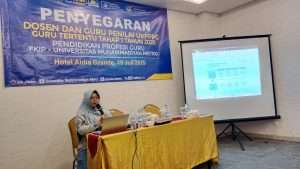 Metro, 19/7/2025 – Universitas Muhammadiyah Metro (UM Metro) terus menunjukkan komitmennya dalam menjaga standar kualitas Pendidikan Profesi Guru (PPG). Hari ini, Sabtu, 19 Juli 2025, UM Metro melalui program PPG-nya sukses menyelenggarakan kegiatan Penyegaran Dosen dan Guru Penilai Uji Kompetensi Pendidikan Profesi Guru (UKPPPG) Guru Tertentu Tahap 1 Tahun 2025. Acara penting ini berlangsung di Hotel Aidia Grande dan dihadiri oleh seluruh dosen serta guru pamong penguji UKPPPG UM Metro.